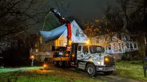 Yes, we specialize in safely removing trees that have fallen on homes, driveways, or other structures using crane-assisted methods to prevent further damage.